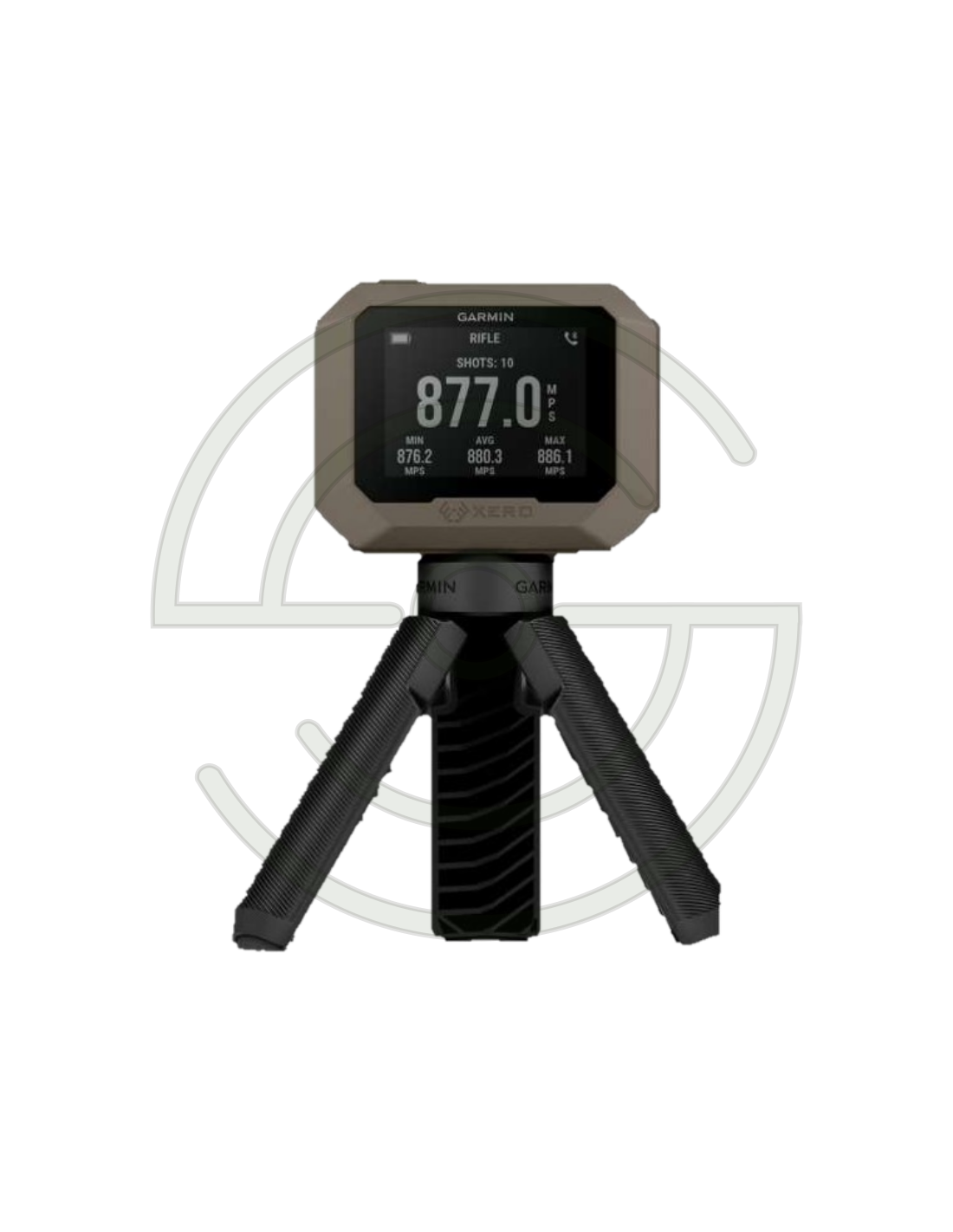 Chronographe Garmin Xero avec application Xero Core, offrant mesure précise de la vitesse des projectiles et analyse avancée via smartphone.
