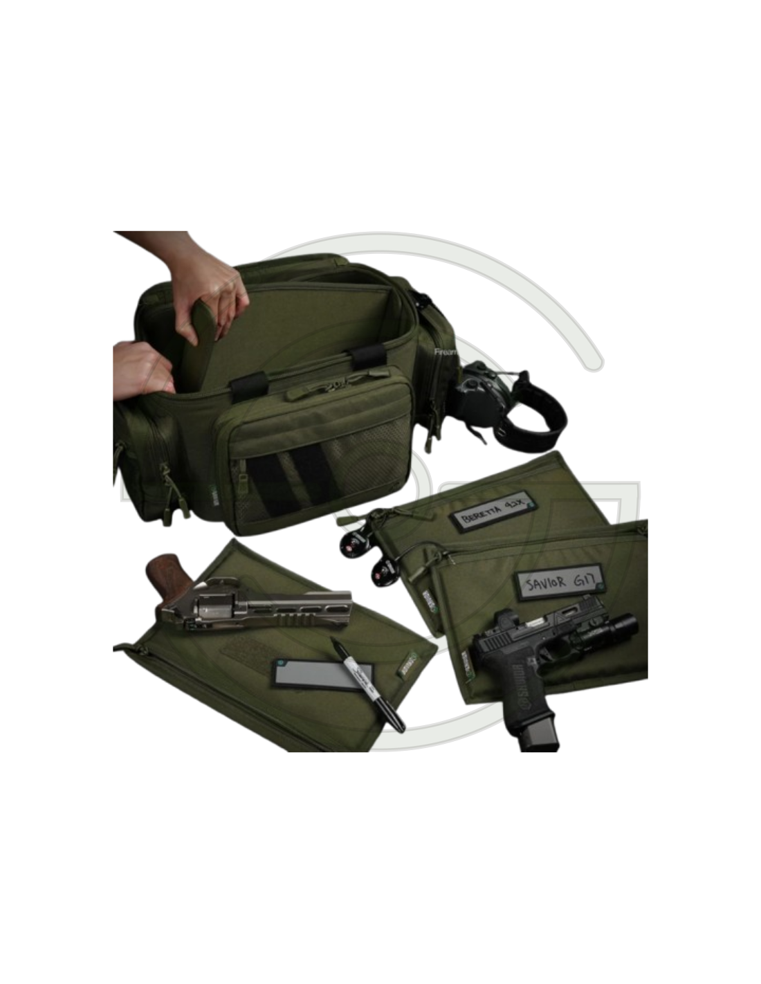 SAVIOR EQUIPMENT [SPECIALIST SERIES] HARD SIDE RANGE BAG, W/ 3X INDIVIDUAL PISTOL BAGS, ADJUSTABLE CENTER DIVIDER